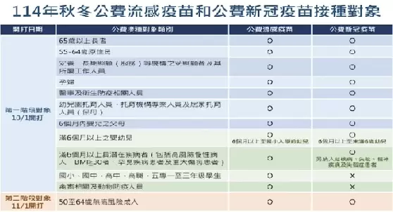秋冬公費流感疫苗和公費新冠疫苗接種對象